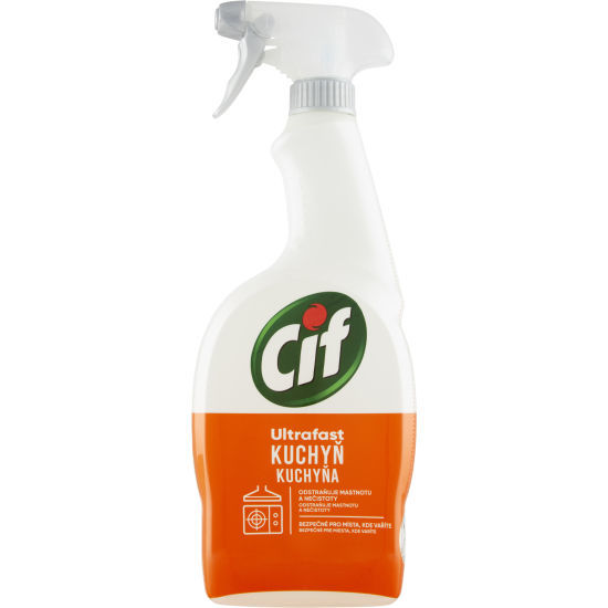 Popis : Rychle odstraňuje každodenní nečistoty v kuchyni. Cif Kuchyň Ultrafast čisticí sprej rychle odstraňuje běžné nečistoty v kuchyni a přitom zanechává povrchy zářivé. Nastříkejte, setřete a je to hotové! Rychle a účinně odstraňuje nečistoty a špínu a zanechává veškeré povrchy zářivě čisté.