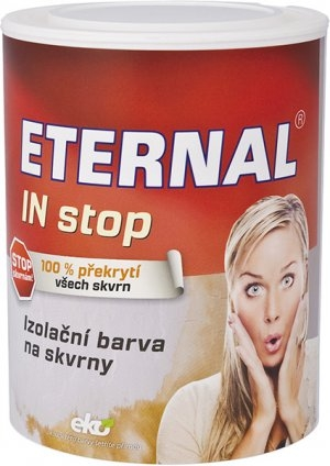 ETERNAL IN stop se používá k základním nátěrům, kterými lze zabránit průniku nikotinových skvrn v silně zakouřených místnostech do nové malby. Dále se dají tímto nátěrem izolovat skvrny po starých válečkových malbách, skvrny po zatékání, rzi, mastnotě, sazích, skvrny vystupující ze dřeva, dřevotřískových desek a sádrokartonů při nátěrech disperzními barvami apod.