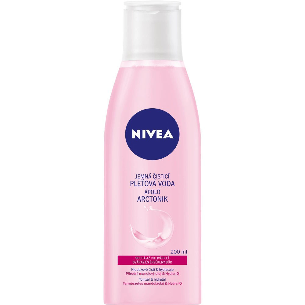Popis : Suchá až citlivá pleť potřebuje obzvlášť jemnou péči. Takovou, která ji nevysuší, ale důkladně dočistí a zároveň zklidní. A přesně takovou tu pro vás máme. Šetrné složení s přírodním mandlovým olejem a aktivní látkou Hydra IQ o pleť jemně pečuje a lehce ji hydratuje. Odstraní nečistoty a dodá pleti svěžest. Pro pleť se sklony k vysušování je tou pravou volbou: NIVEA Jemná čisticí pleťová voda.